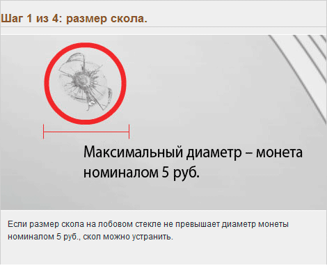 Ремонт сколов на лобовом стекле представляет собой выравнивание поврежденного места полимером, последующее облучение ультрафиолетом. Затем специалисты выполняют полировку.